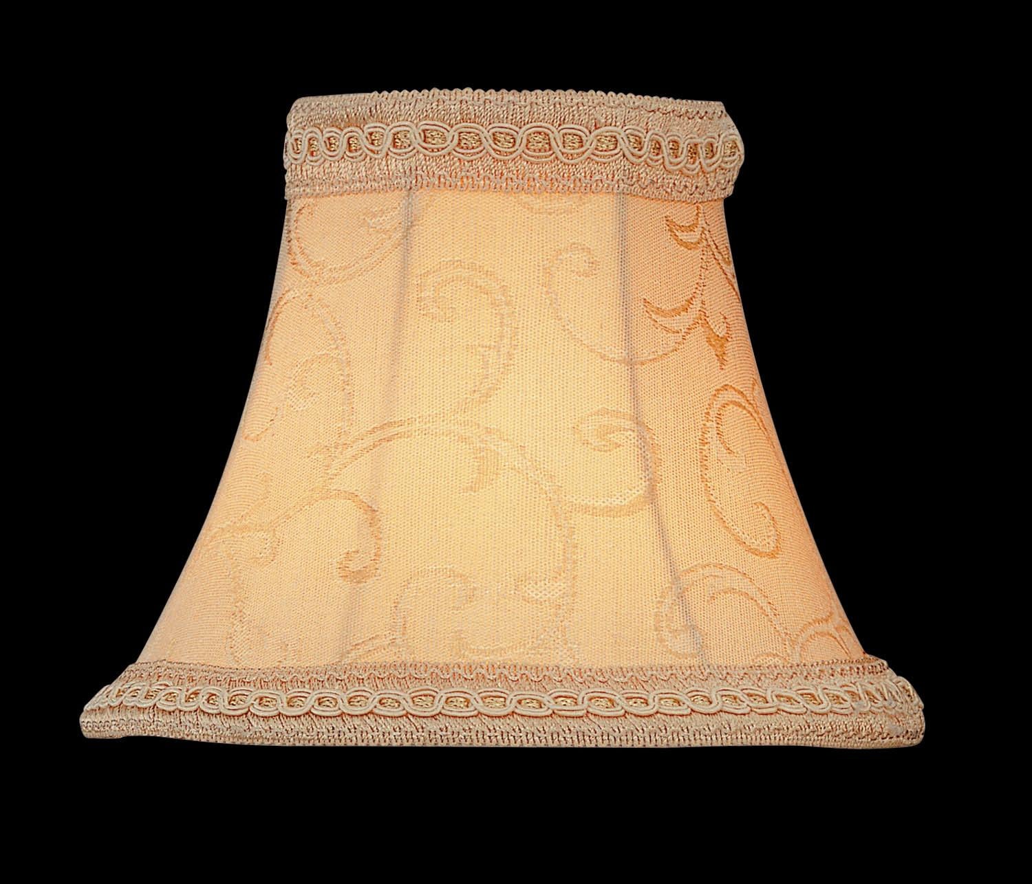 CANDELABRA SHADE/BEIGE JACQUARD W. TRIM – 3″Tx6″Bx5″SL