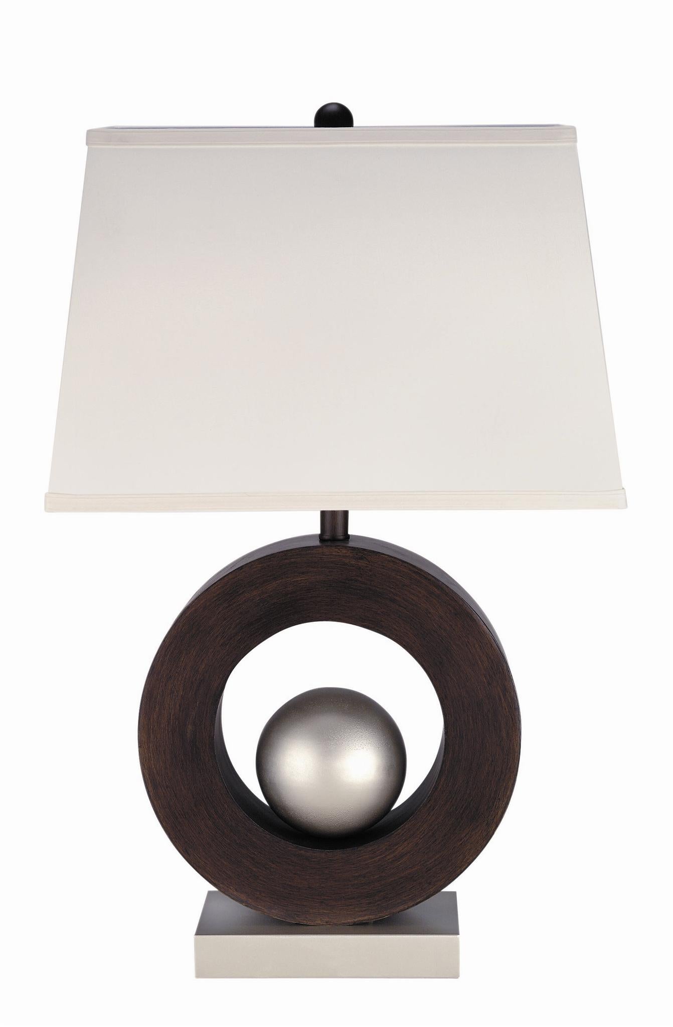 TABLE LAMP, SS/D.WALNUT W/OFF-WHT FABRIC SHADE, E27 A 150W