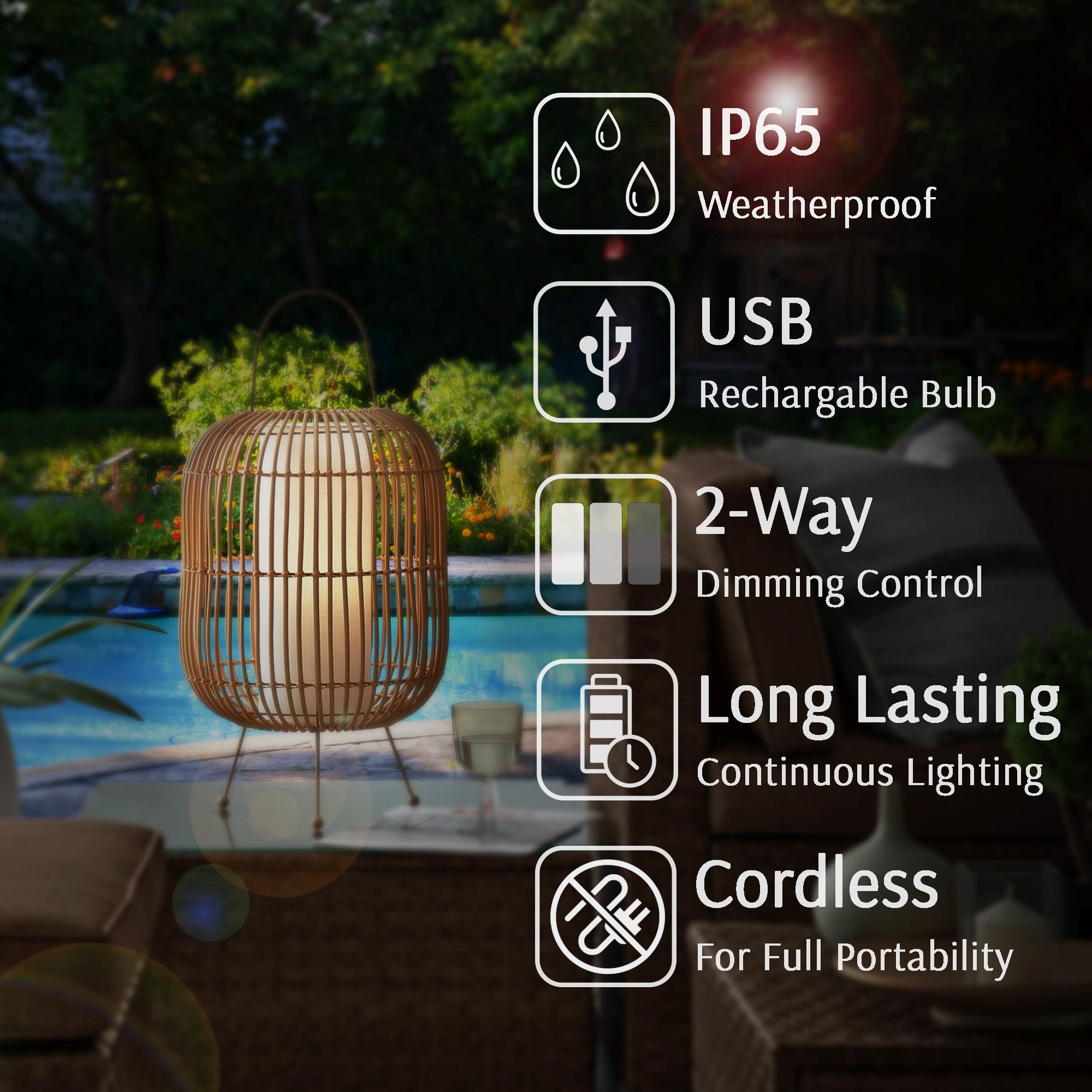 OUTDOOR-TABLE LAMP,BRN/INNER FABR,LED RECHARGEABLE 5.6W