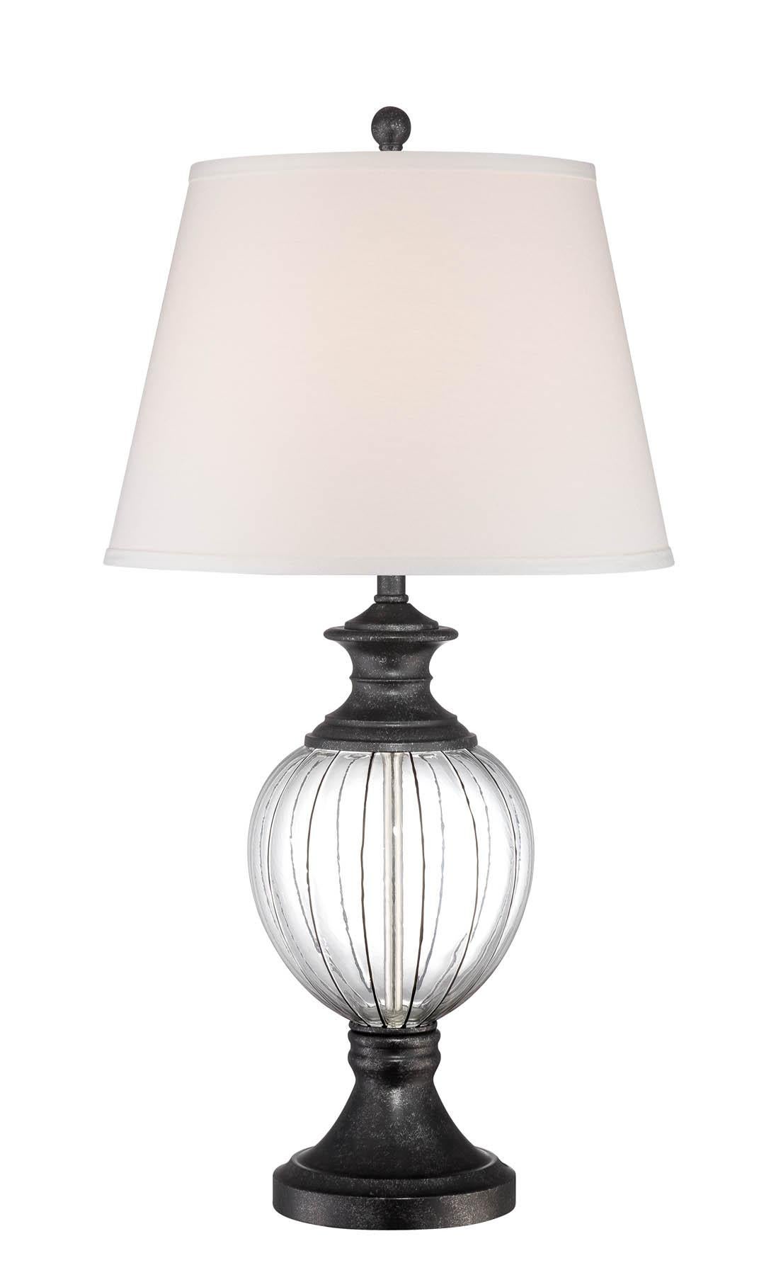 TABLE LAMP, ANT.SILV BRZ/GLS/OFF-WHT FABRIC SHD,E27 23W,DCI