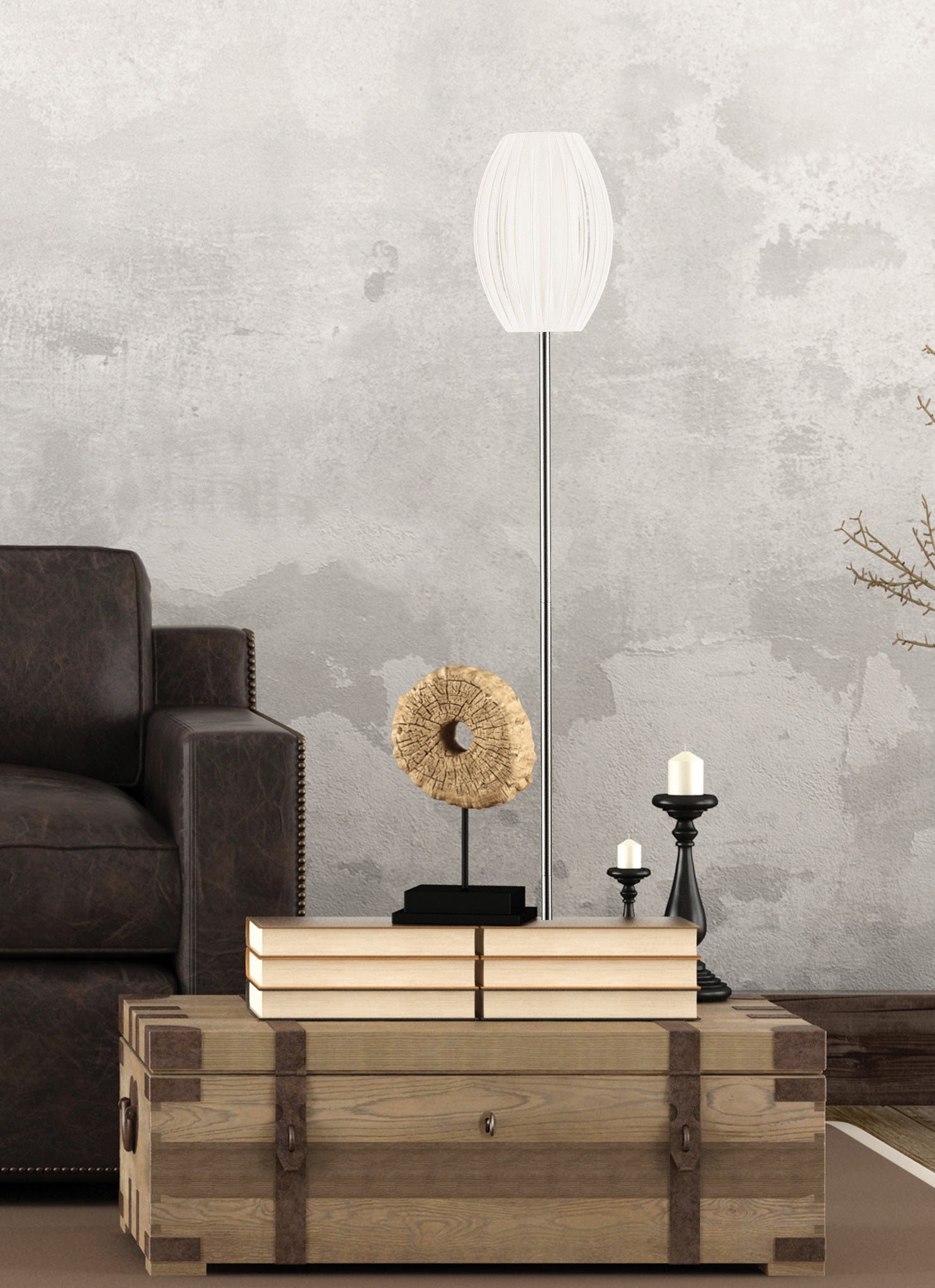 FLOOR LAMP, SS W/WHITE PLEATED SHADE, E27 TYPE A 100W,DCI