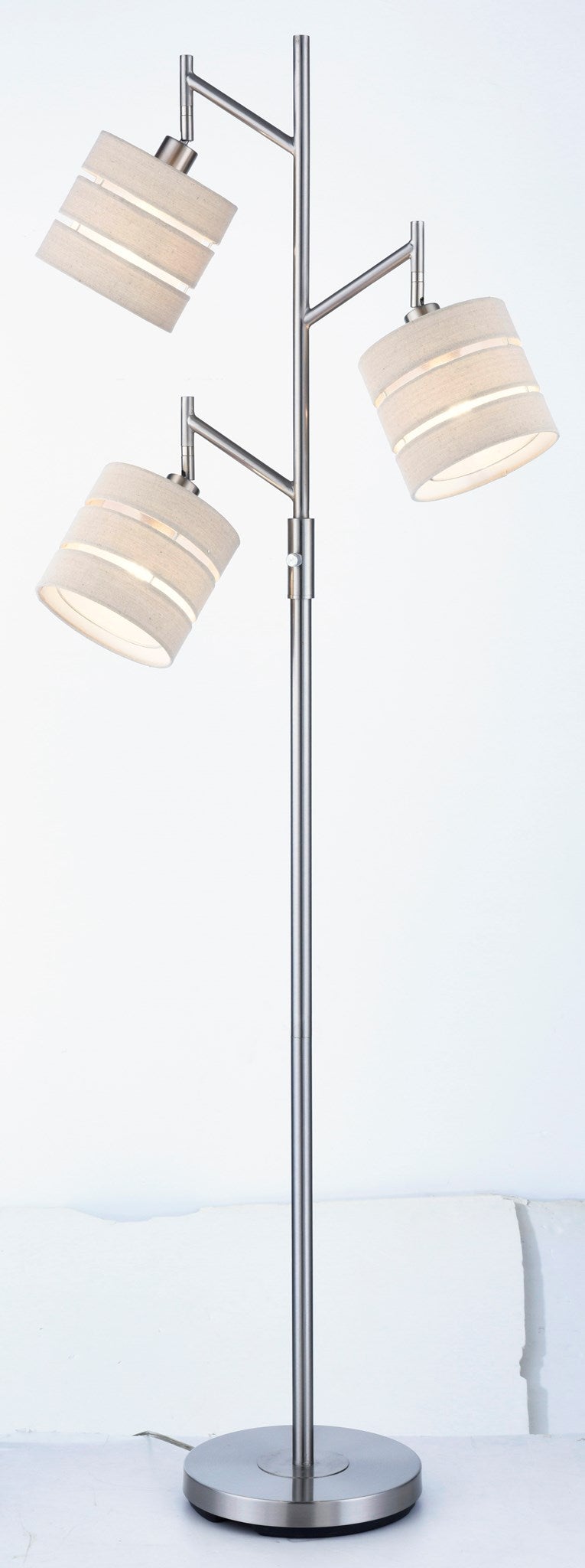 3-LITE FLOOR LAMP, BN/LINEN SHADE, E27 CFL 13Wx3