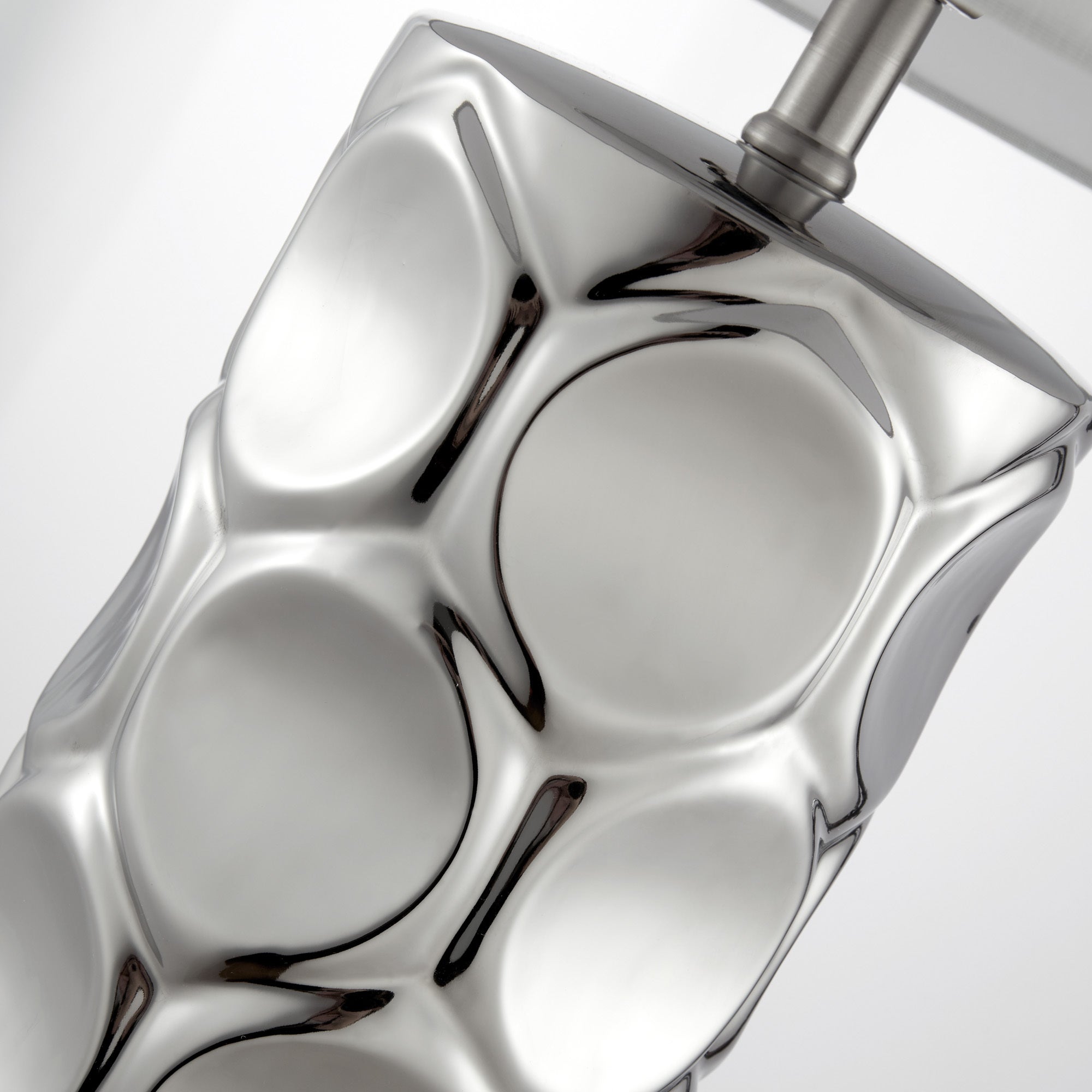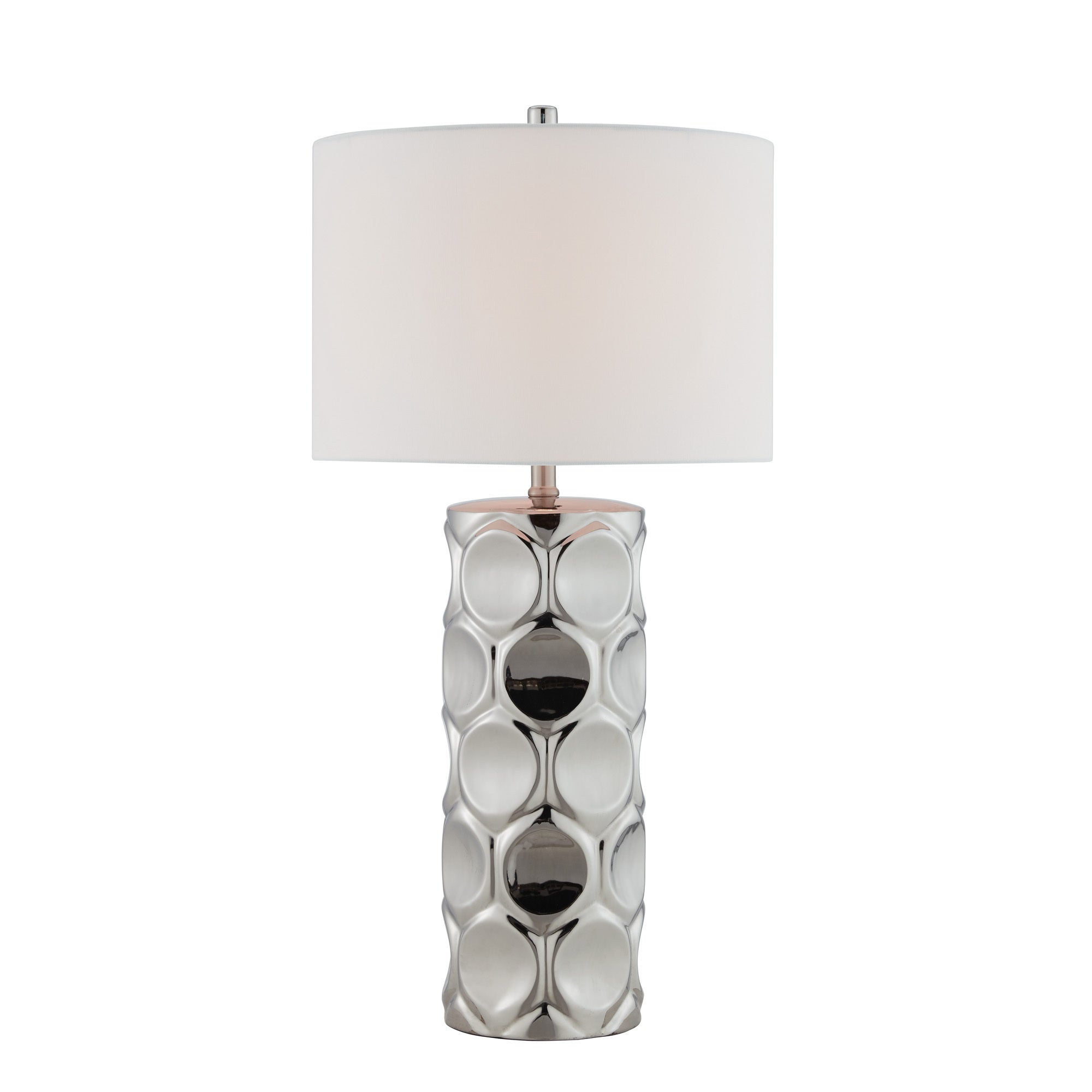 TABLE LAMP, PLATED SILVER CERAMIC/WHT FABRIC,E27 A 150W,DCI