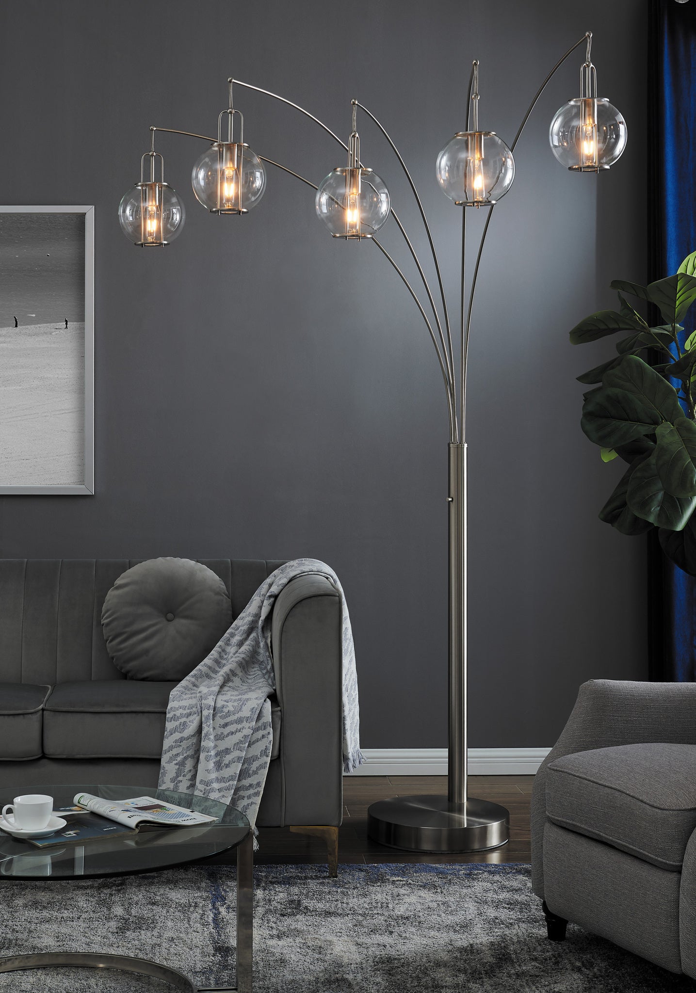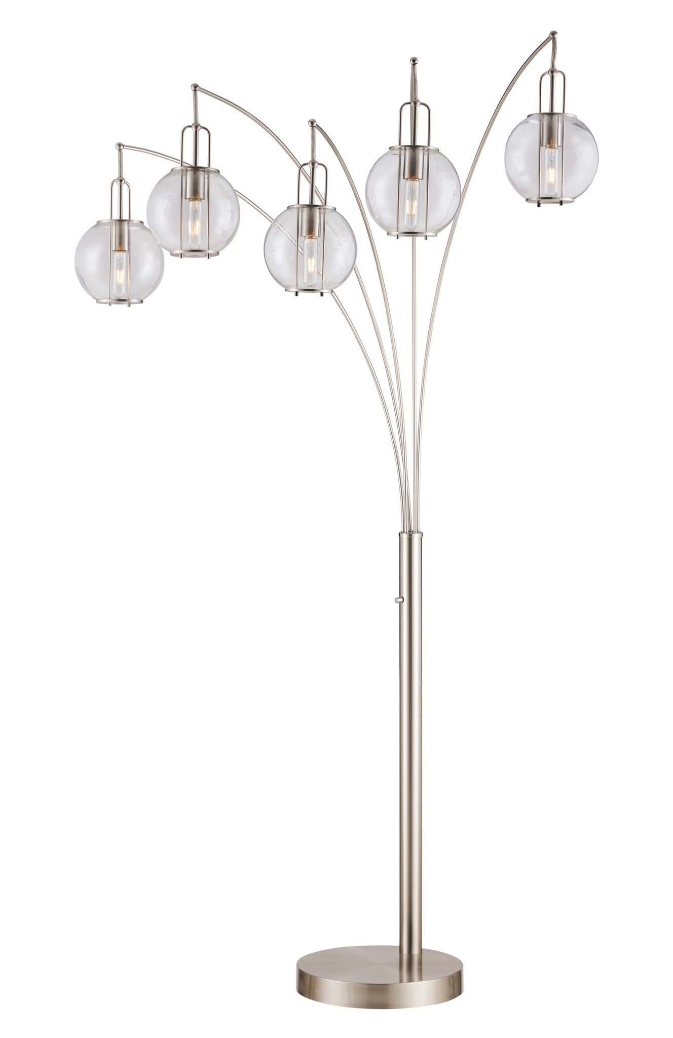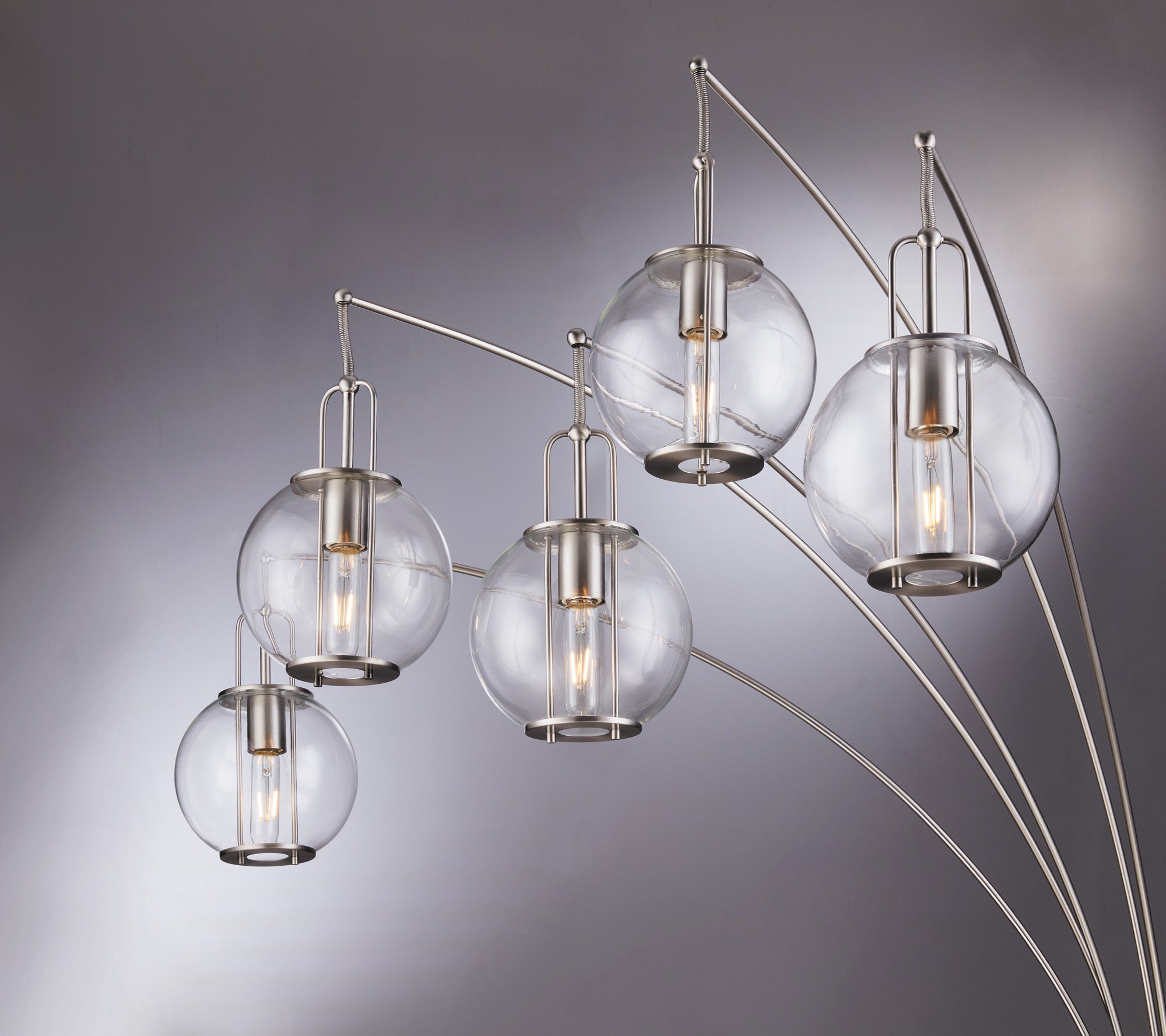 5-LITE ARCH LAMP, BN/CLEAR GLASS SHD, E27 VINTAGE T30 40Wx5