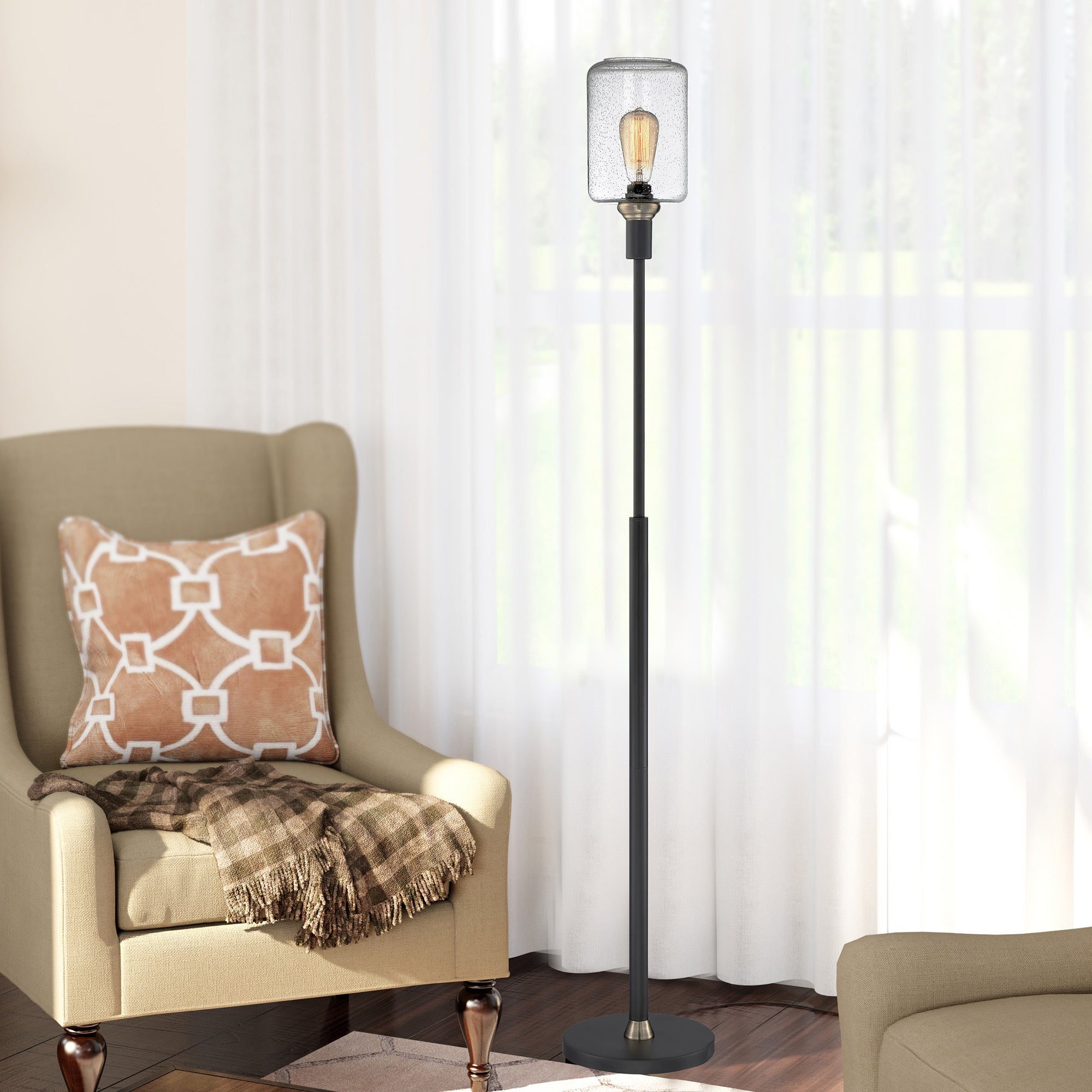 TWO TONE FLOOR LAMP, BLACK/AB/SEEDED GLASS SHADE, E27 V 60W
