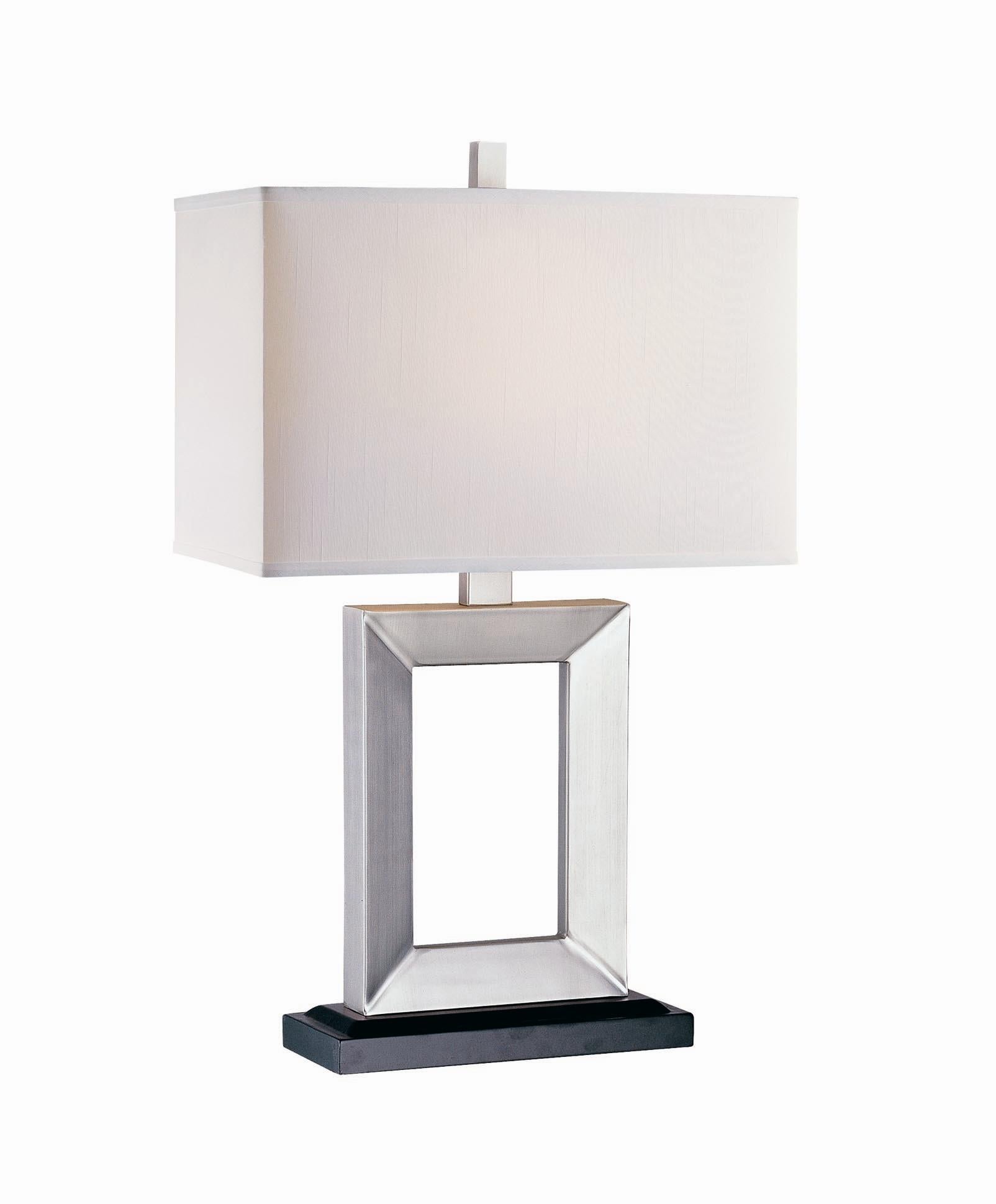 TABLE LAMP,SILV METAL/BLK BASE/WHT SHD,E27 CFL25W/3-WAY,DCI