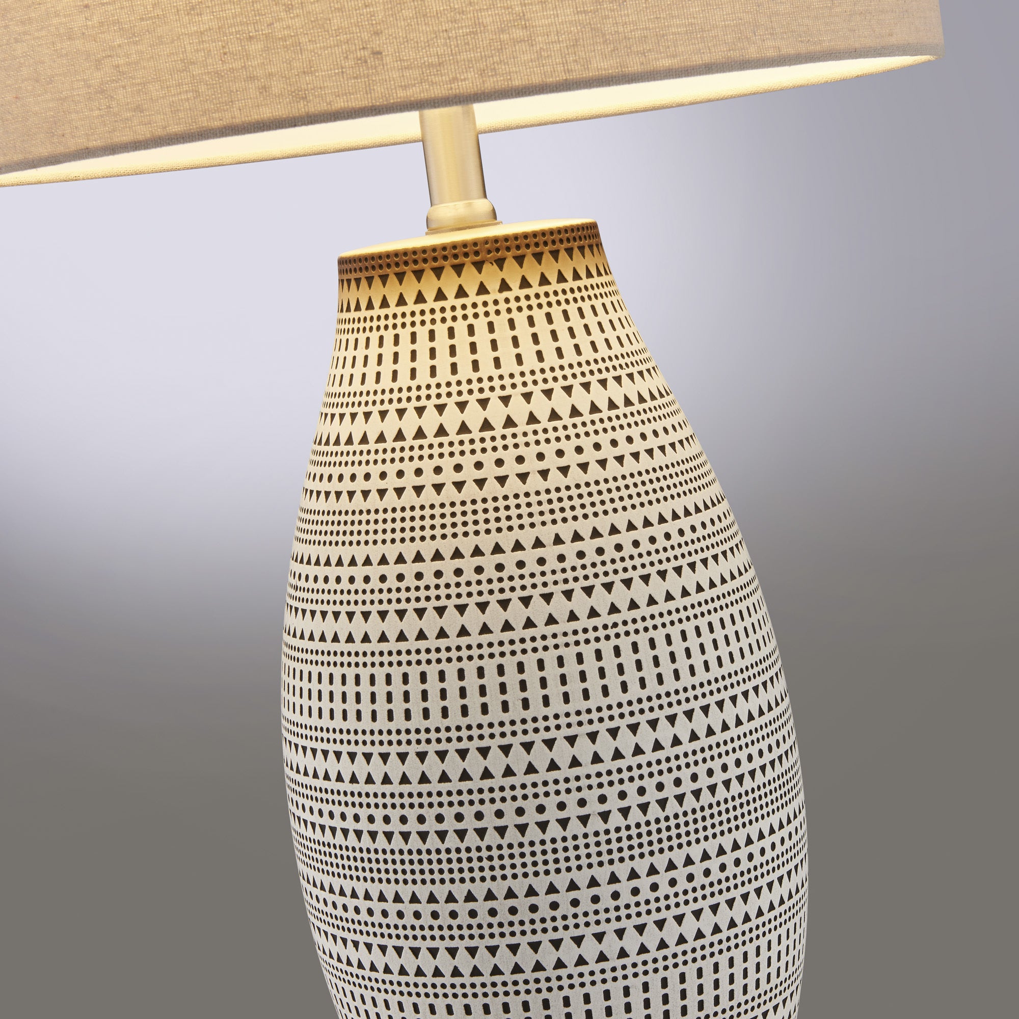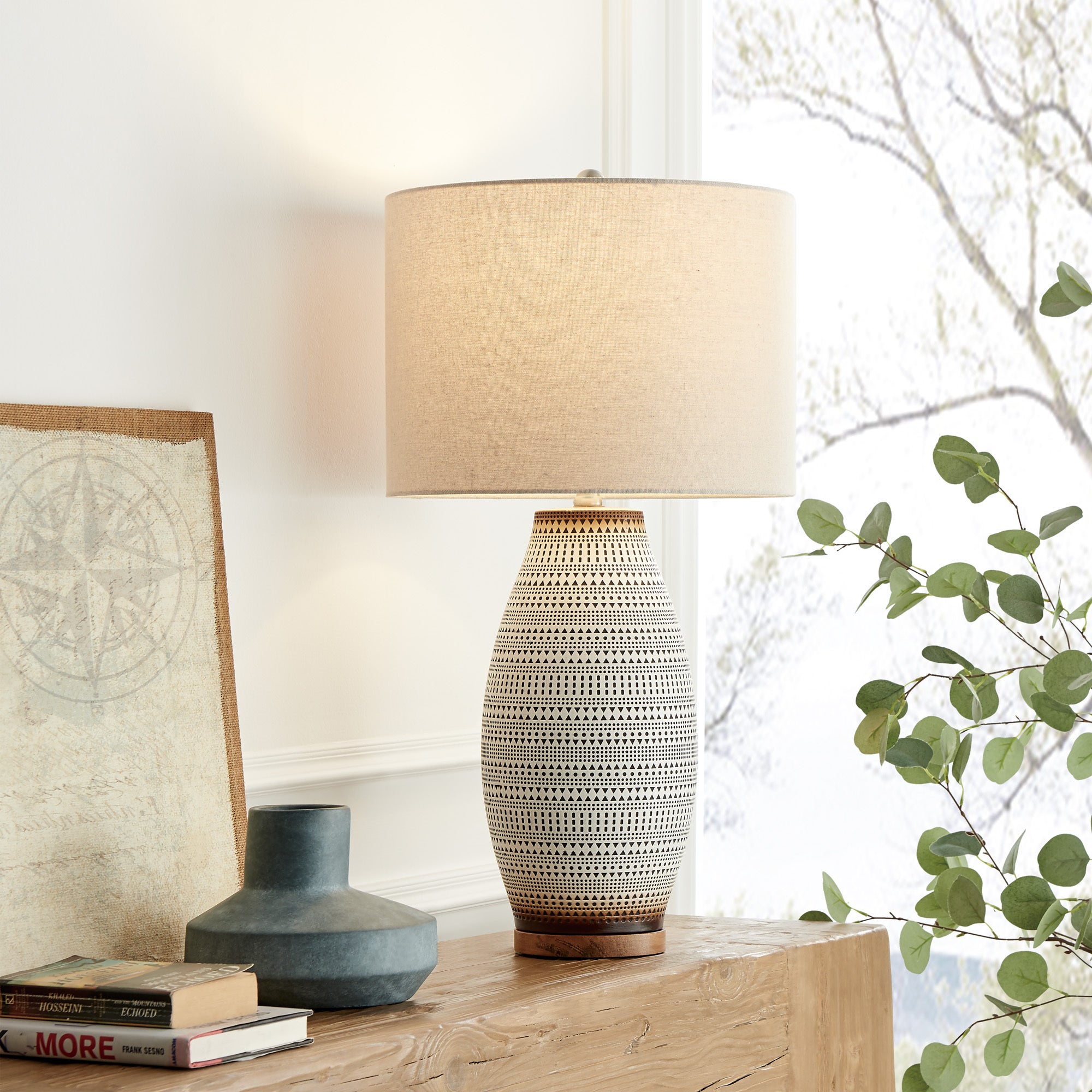CERAMIC TABLE LAMP, TWO TONE/OATMEAL LINEN SHADE, E27 A 100W