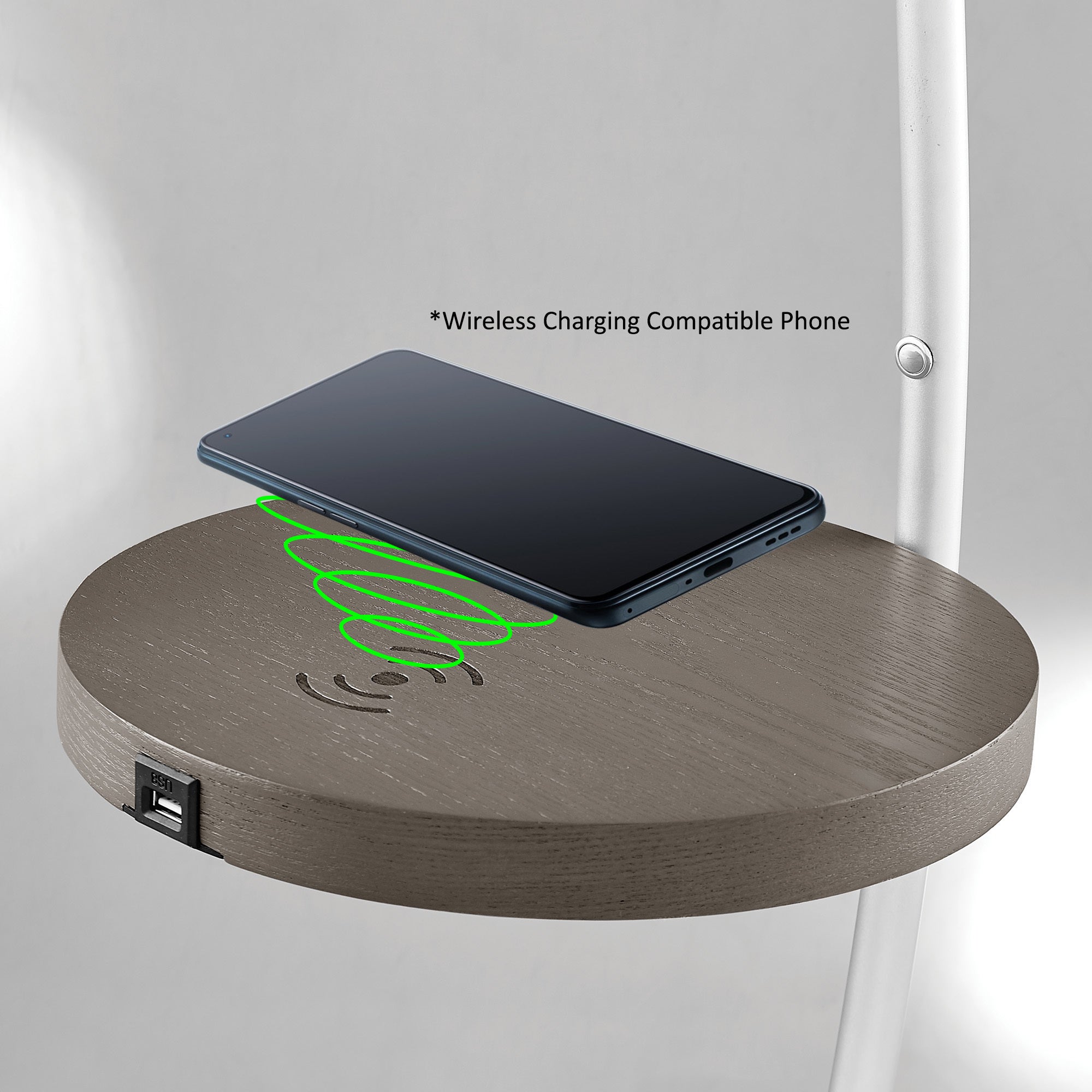 LED FLOOR LAMP W/DESK, SILVER USB&WIRLESS CHARGING, LED 15W
