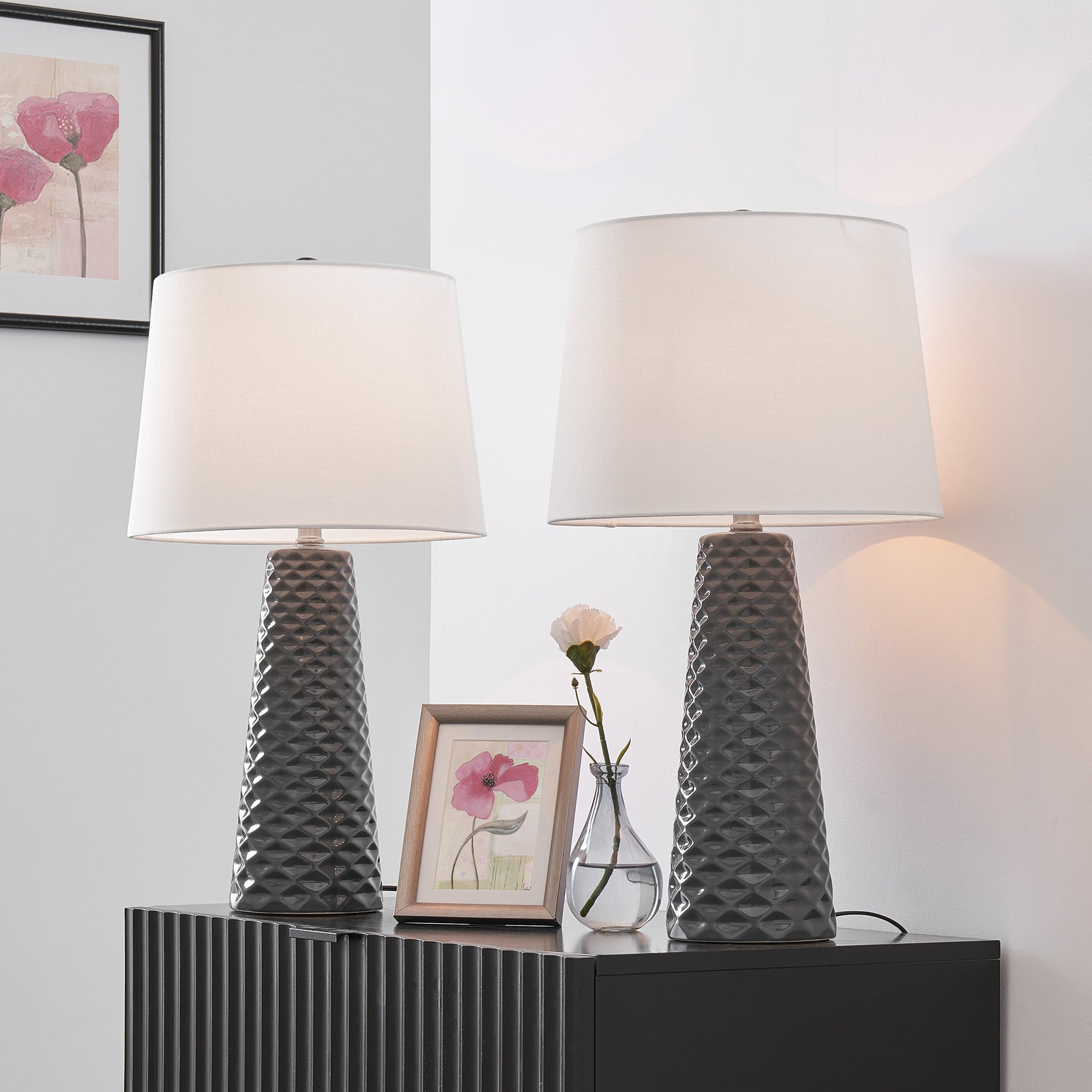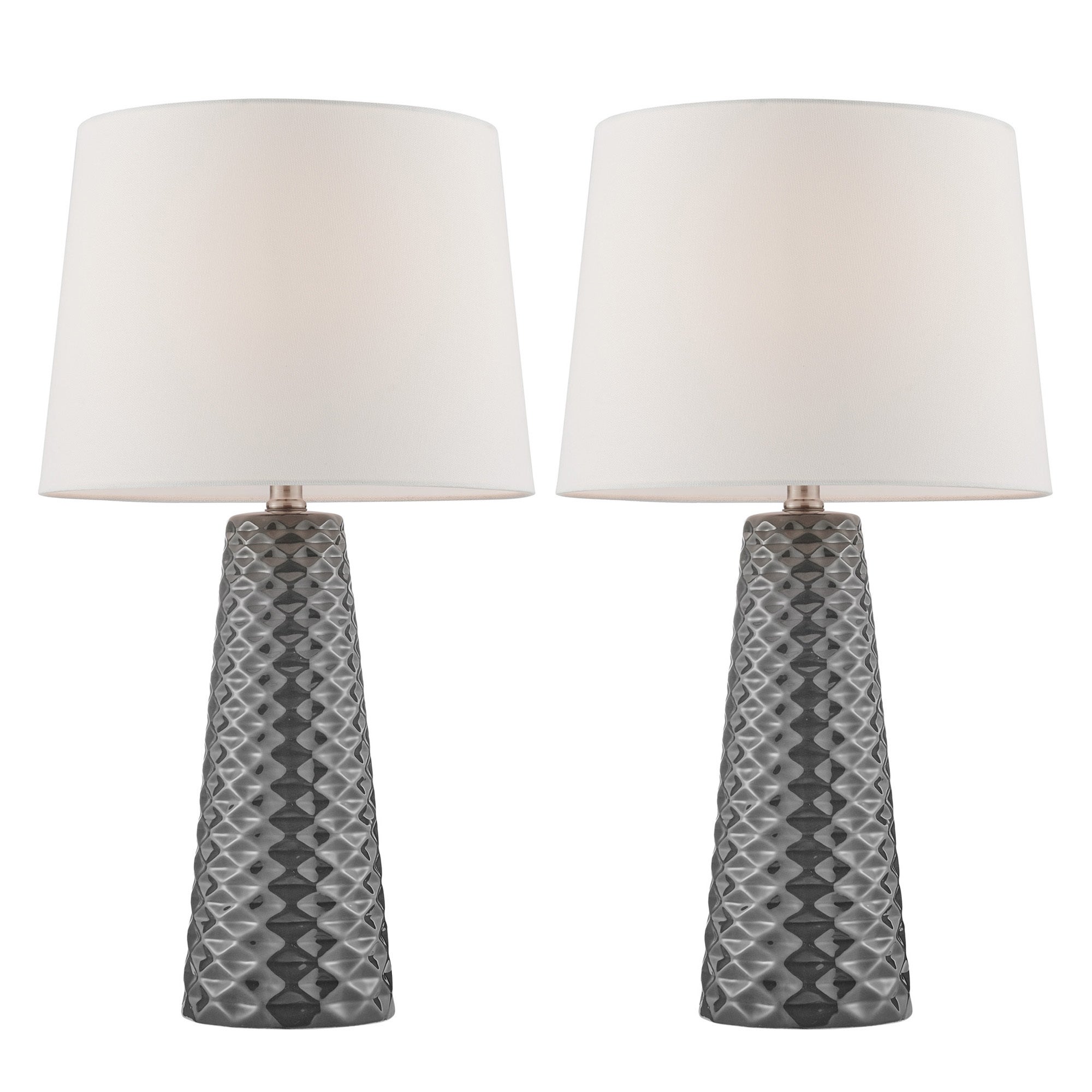 2 PACK-TABLE LAMP,GREY CERAMIC/WHT LINEN,E27 A 100Wx2,DCI