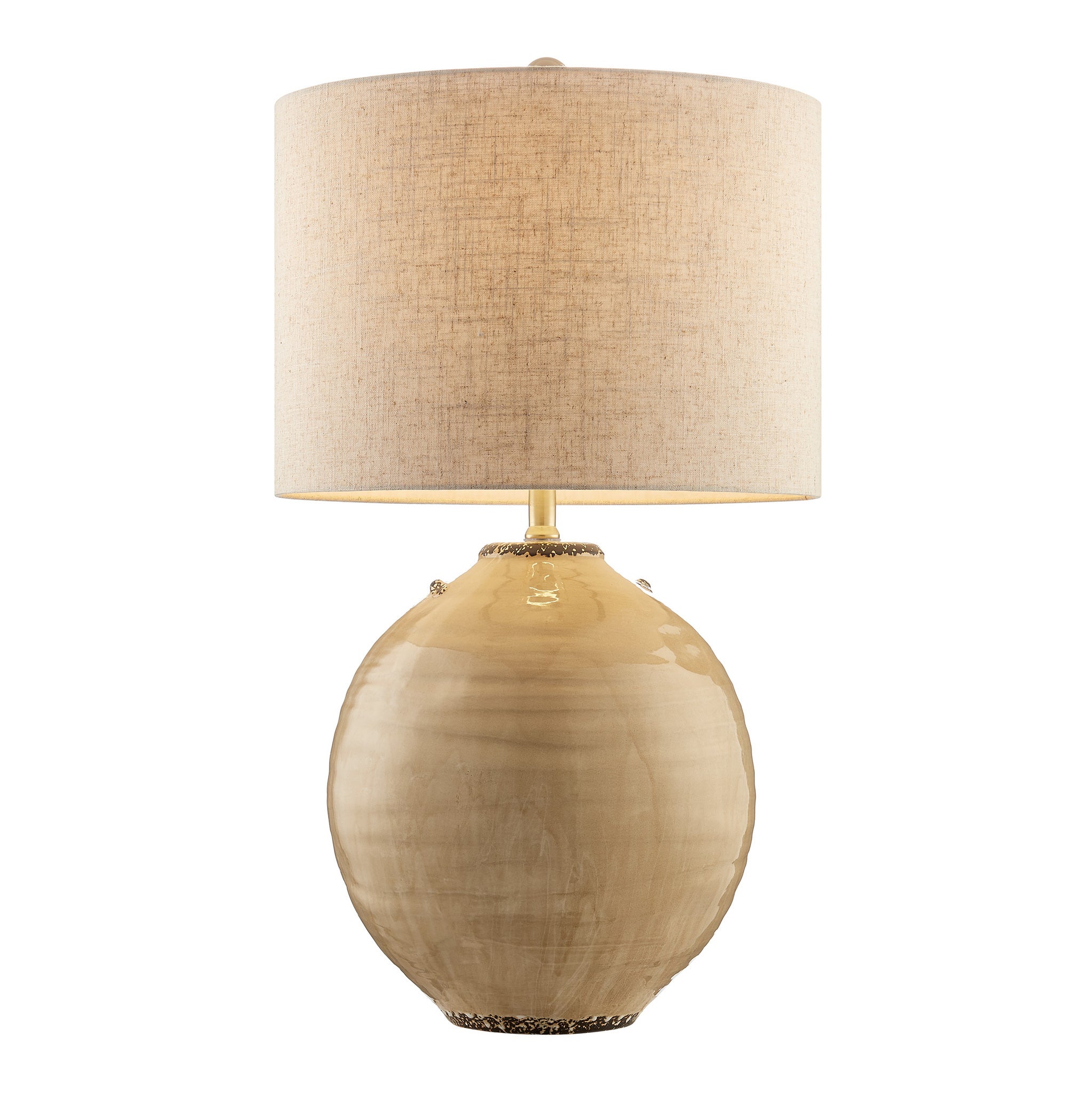 CERAMIC TABLE LAMP, L.BROWN/LINEN FABRIC SHADE, E27 A 100W