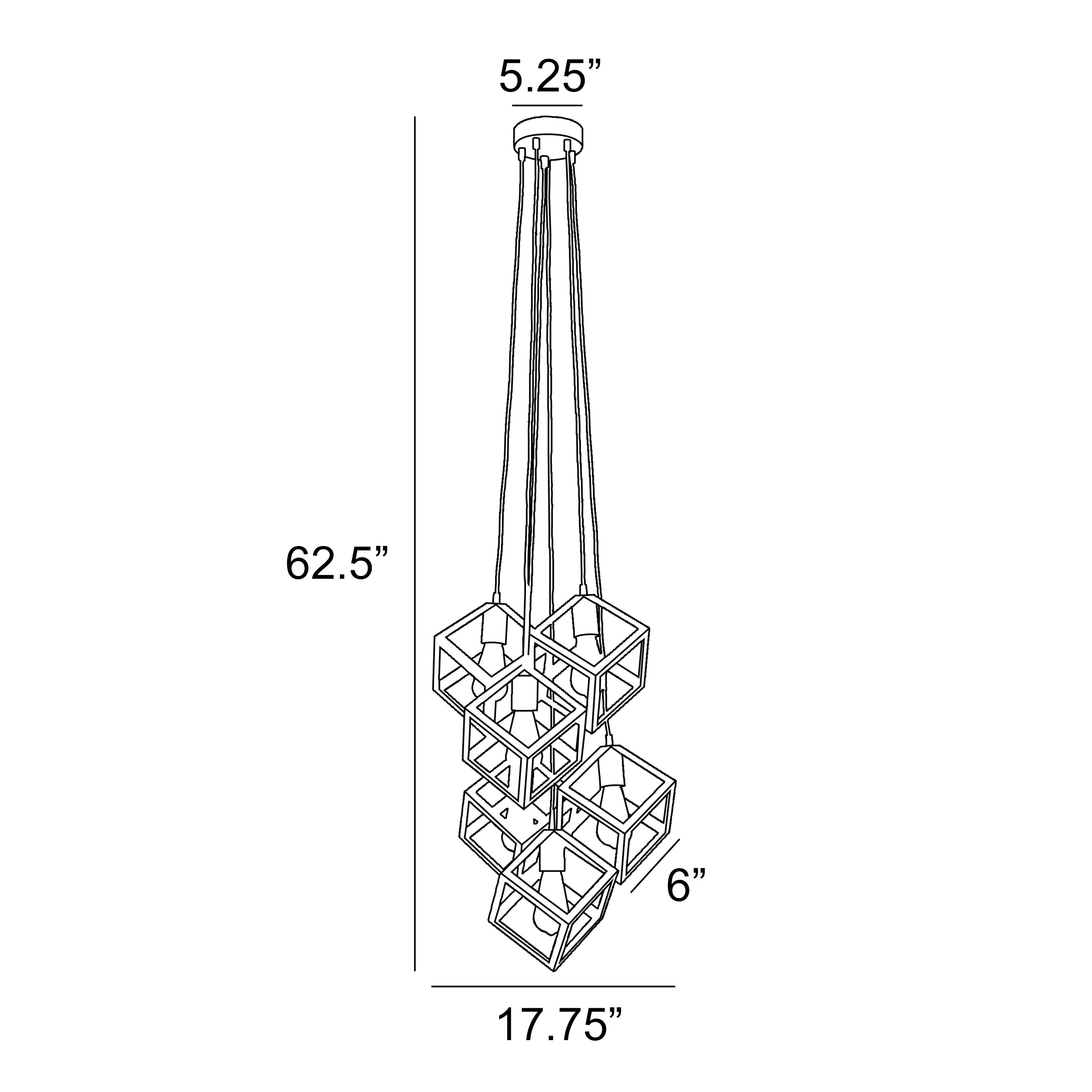 6-LITE CHANDELIER, BLACK, E27 TYPE LED ST64 6Wx6