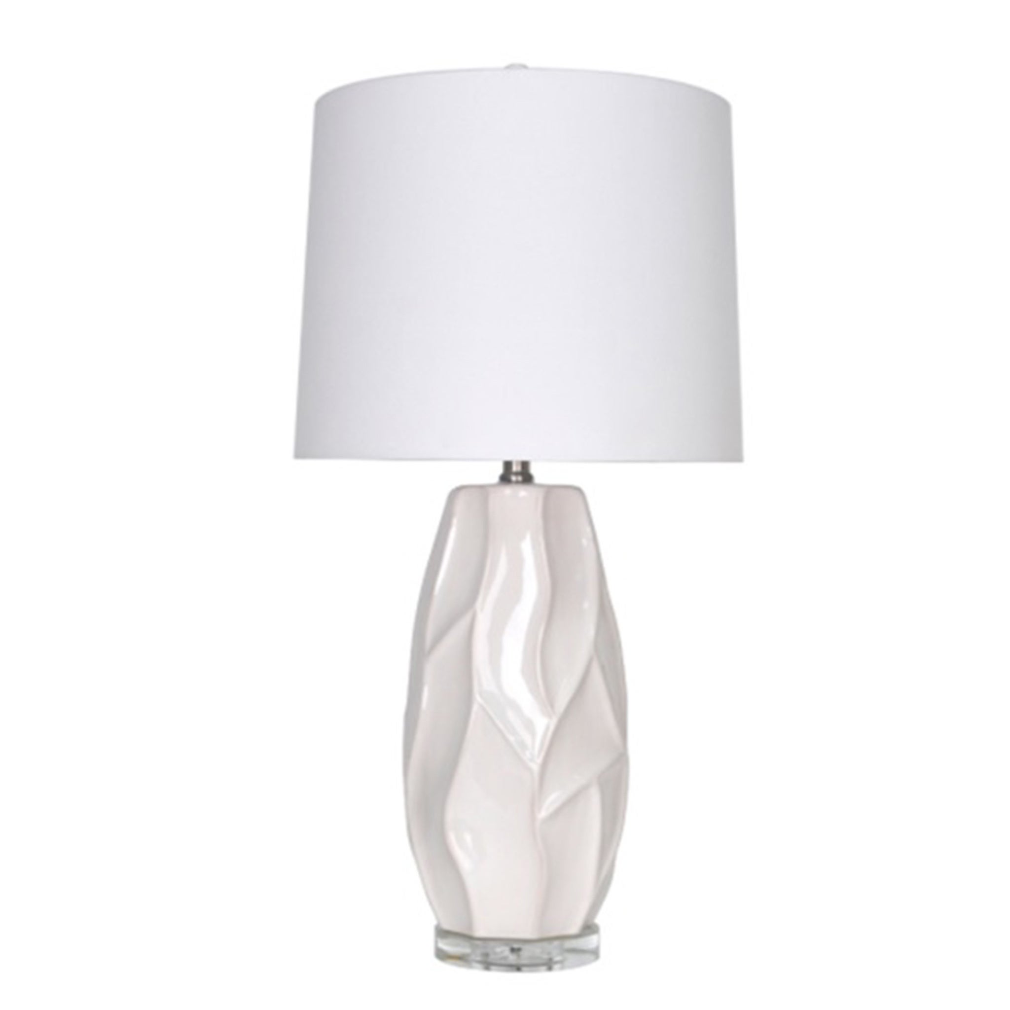CERAMIC TABLE LAMP, WHITE & CRYSTAL/WHITE SHADE, TYPE A 100W