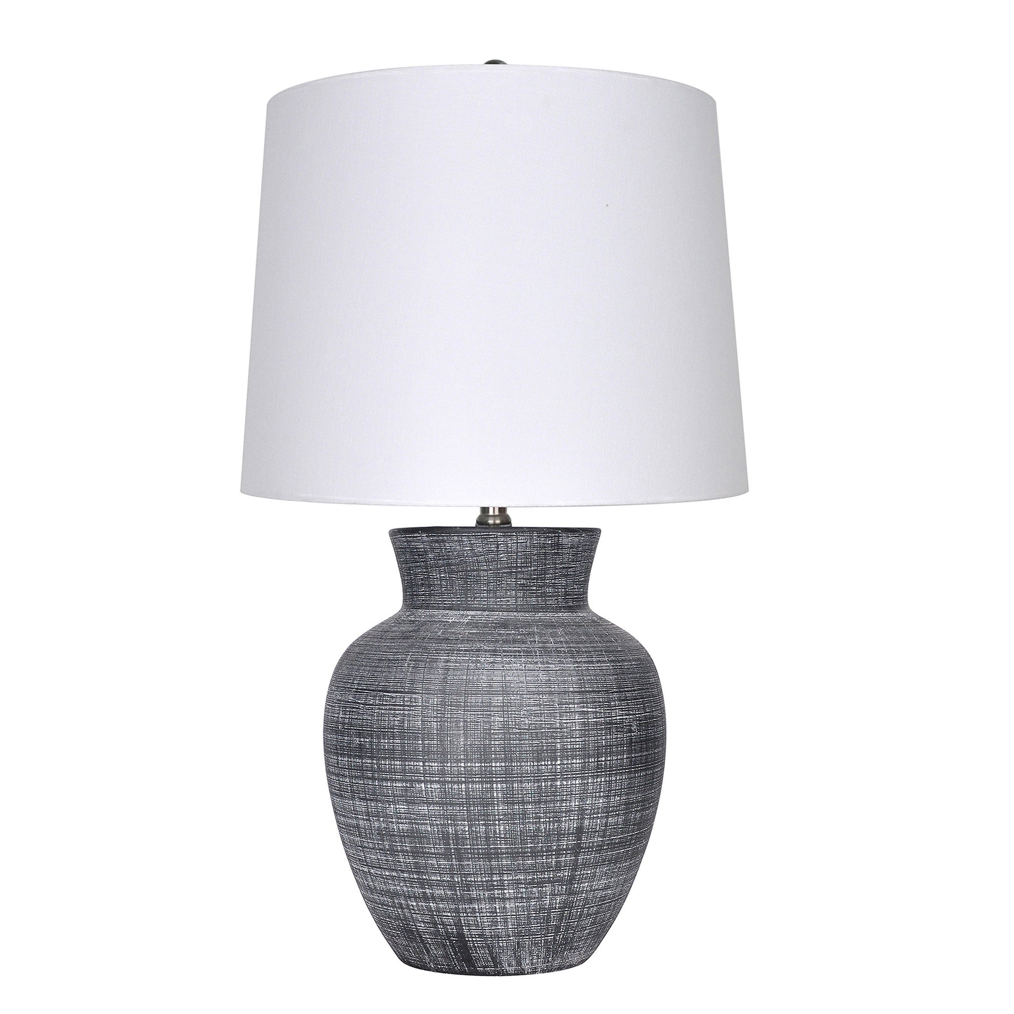 CERAMIC TABLE LAMP, TEXTURED GREY, WHITE SHD, TYPE A 100W