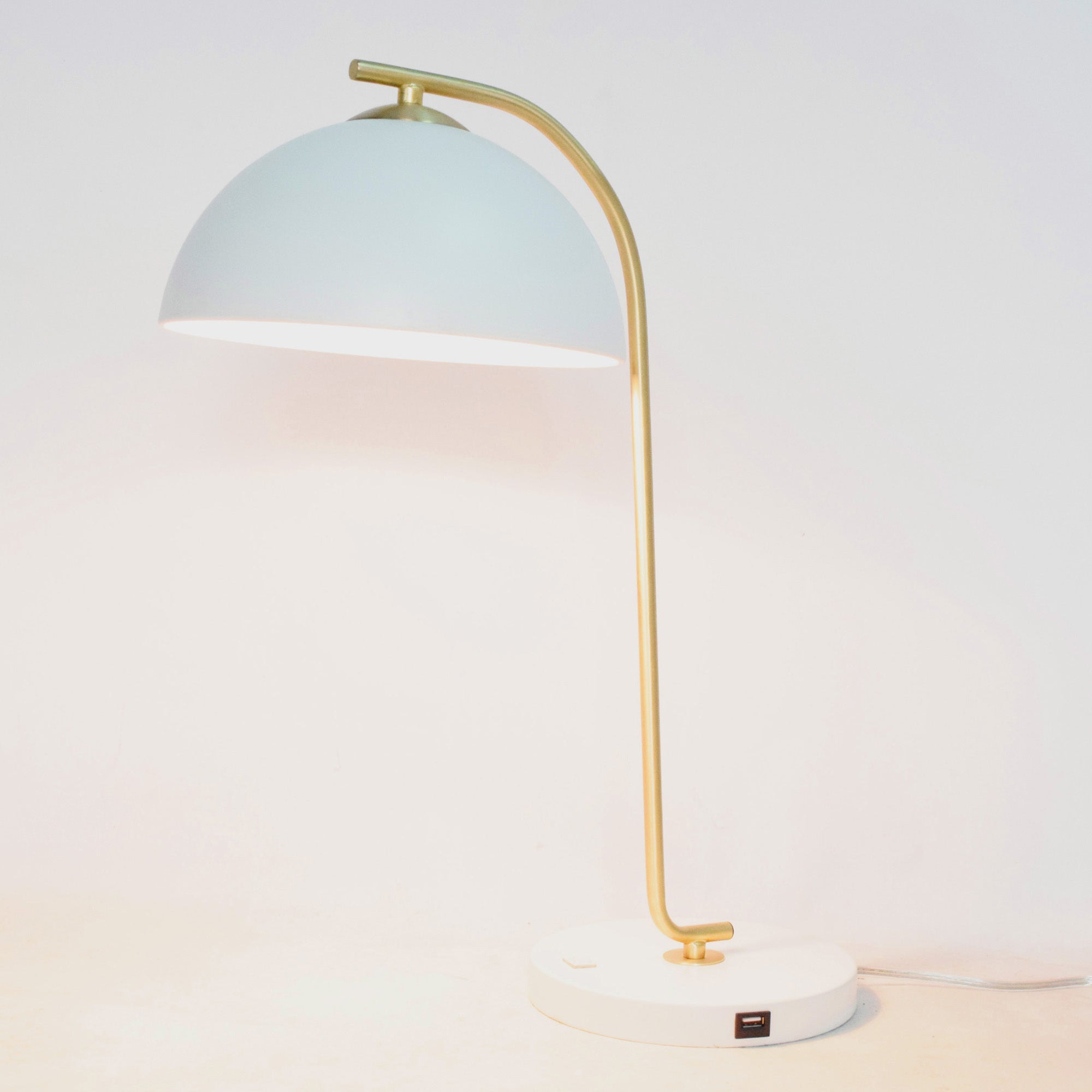 TABLE LAMP, GOLD/METAL WHITE SHADE, W/USB PORT, E27 G 40W