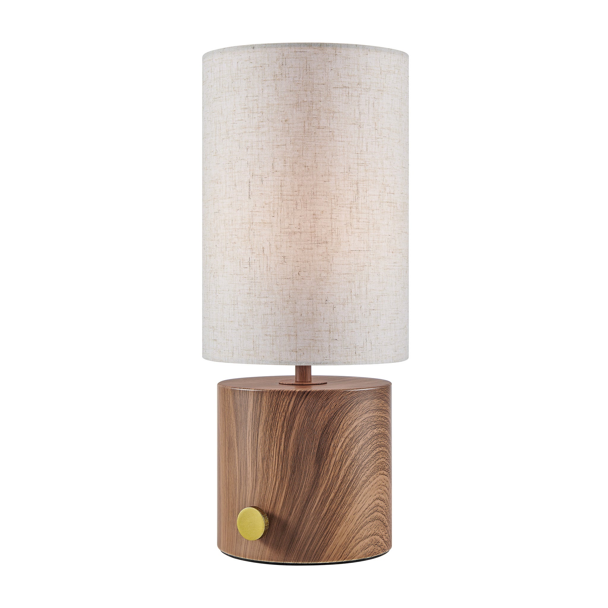 TABLE LAMP, WALNUT FINISHED/WHITE FABRIC,LED RECHARGEABLE 2W
