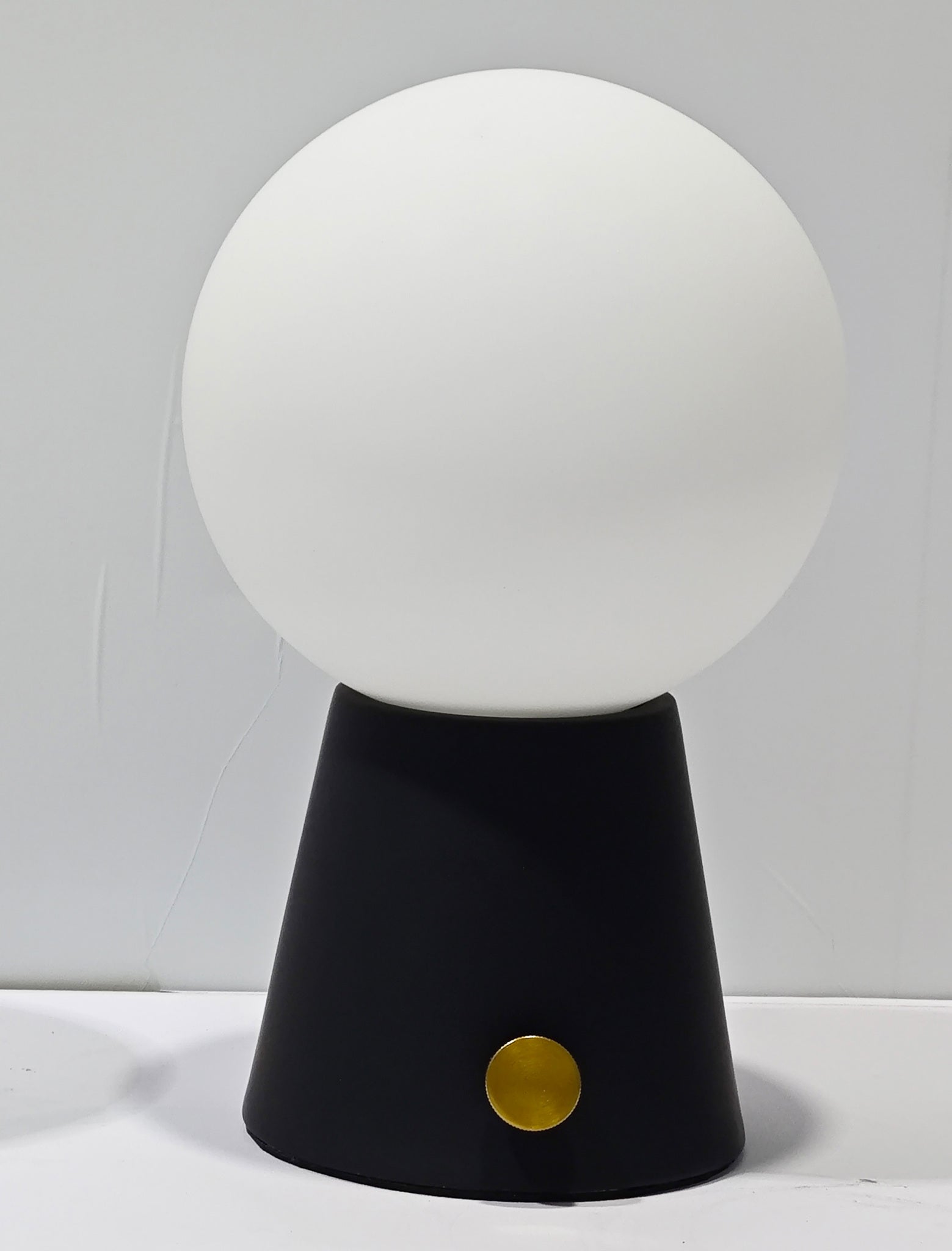 TABLE LAMP, BLACK/WHITE GLASS SHADE, LED RECHARGEABLE 2W