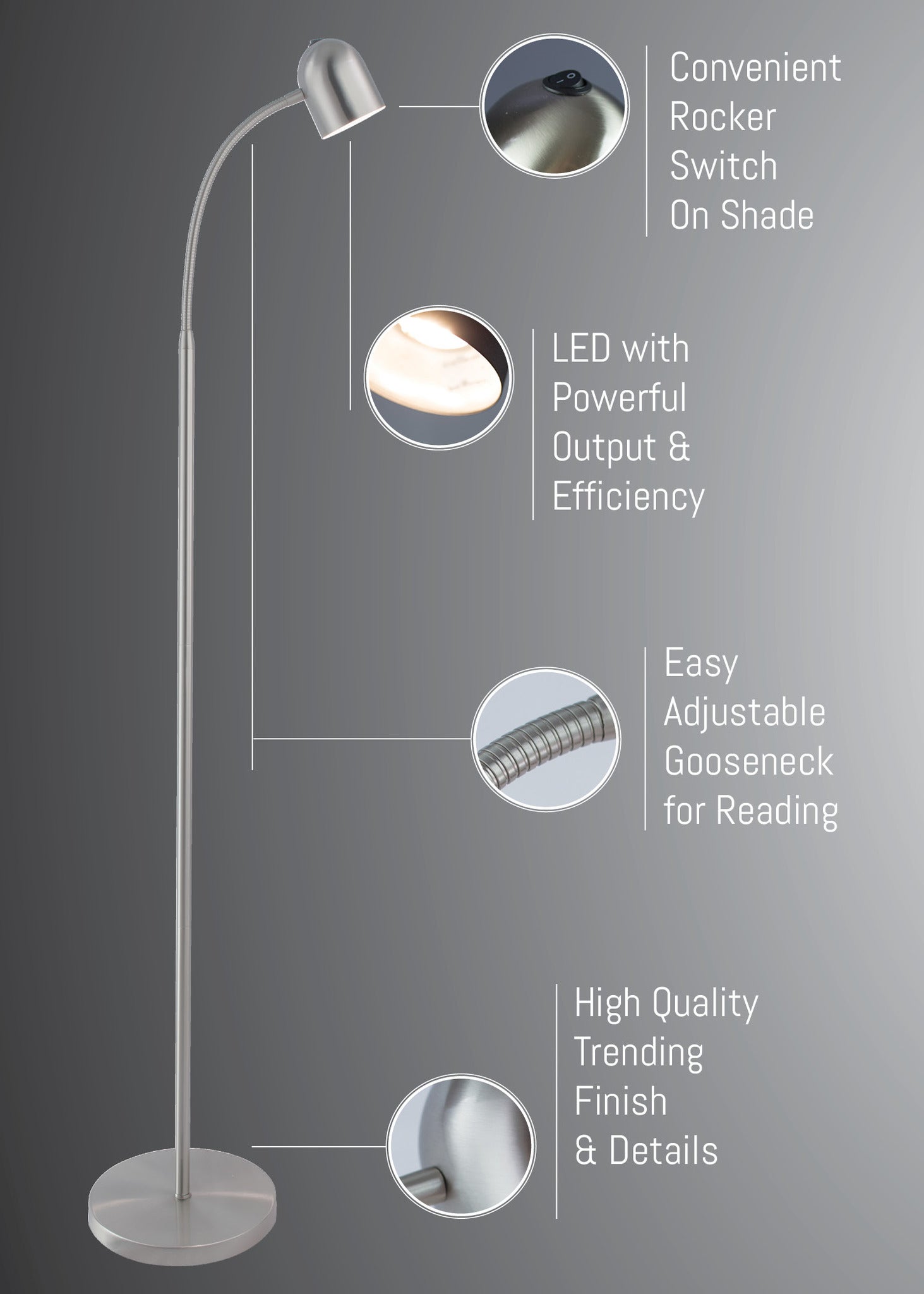 LED FLOOR LAMP, BRUSHED NICKEL, TYPE LED 5W