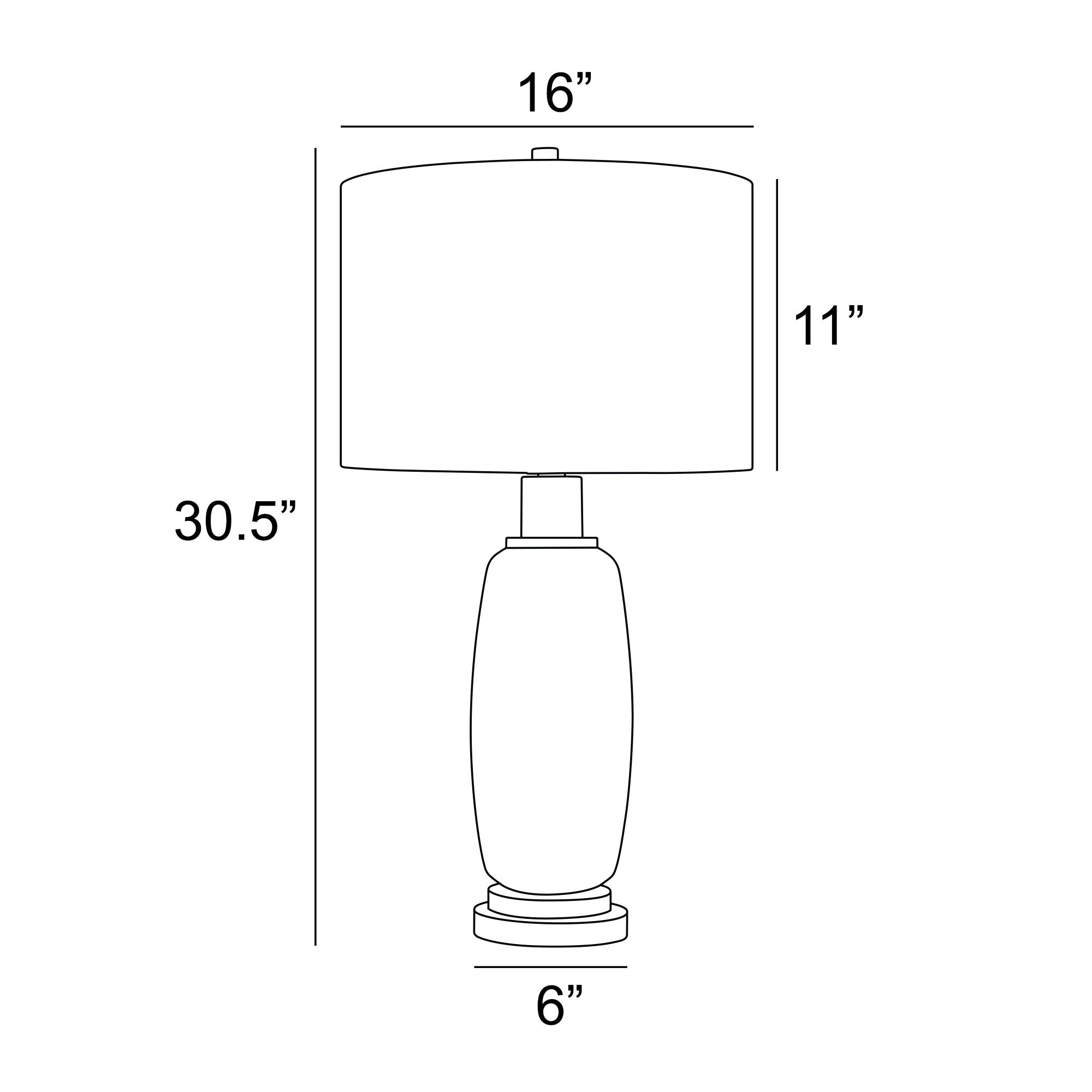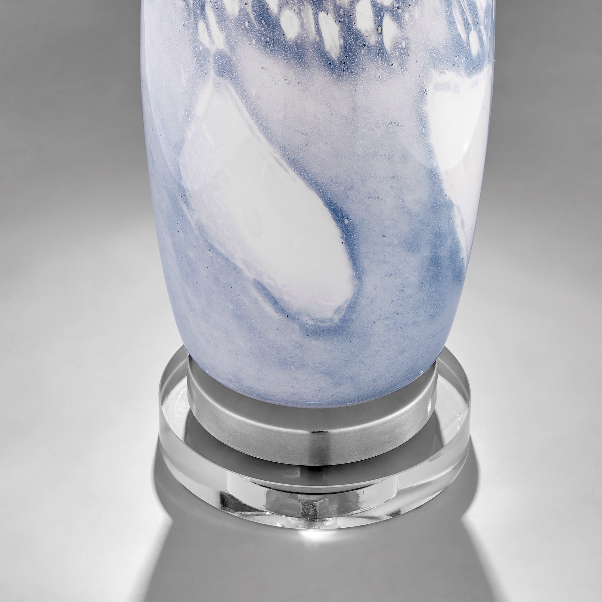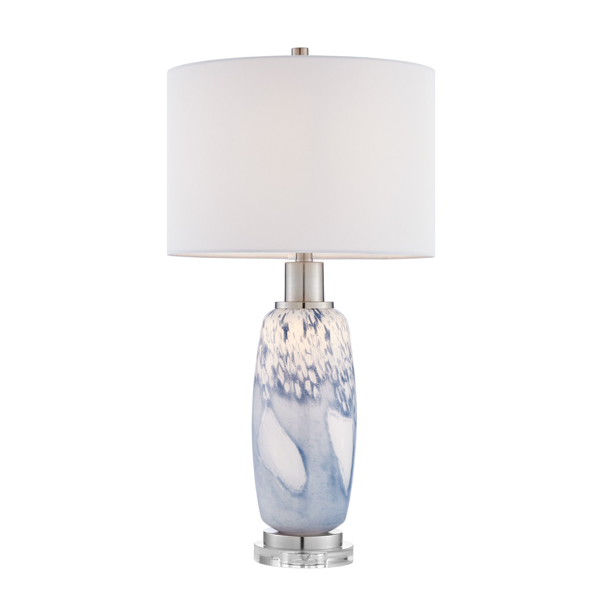 TABLE LAMP, GLASS BODY/WHITE FABRIC SHD, E27 A 150W & LED 3W